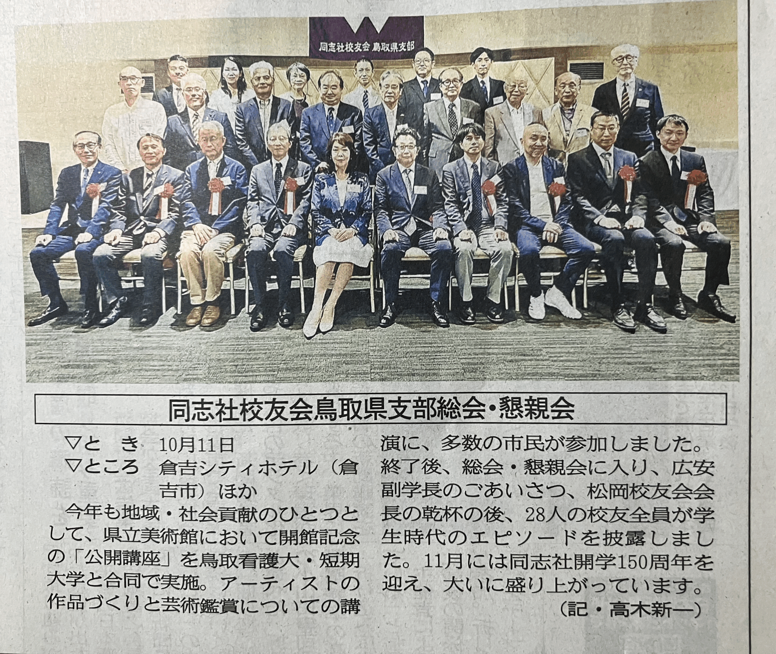 同志社校友会鳥取県支部の総会・懇親会の記事が日本海新聞に掲載されました(11月14日)